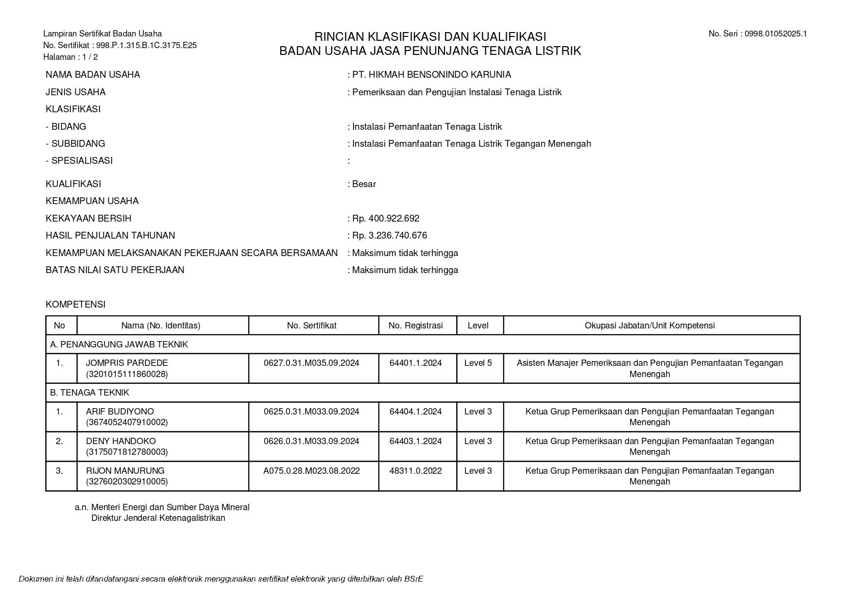 Penunjukan PT. Hikmah Bensonindo Karunia LIT